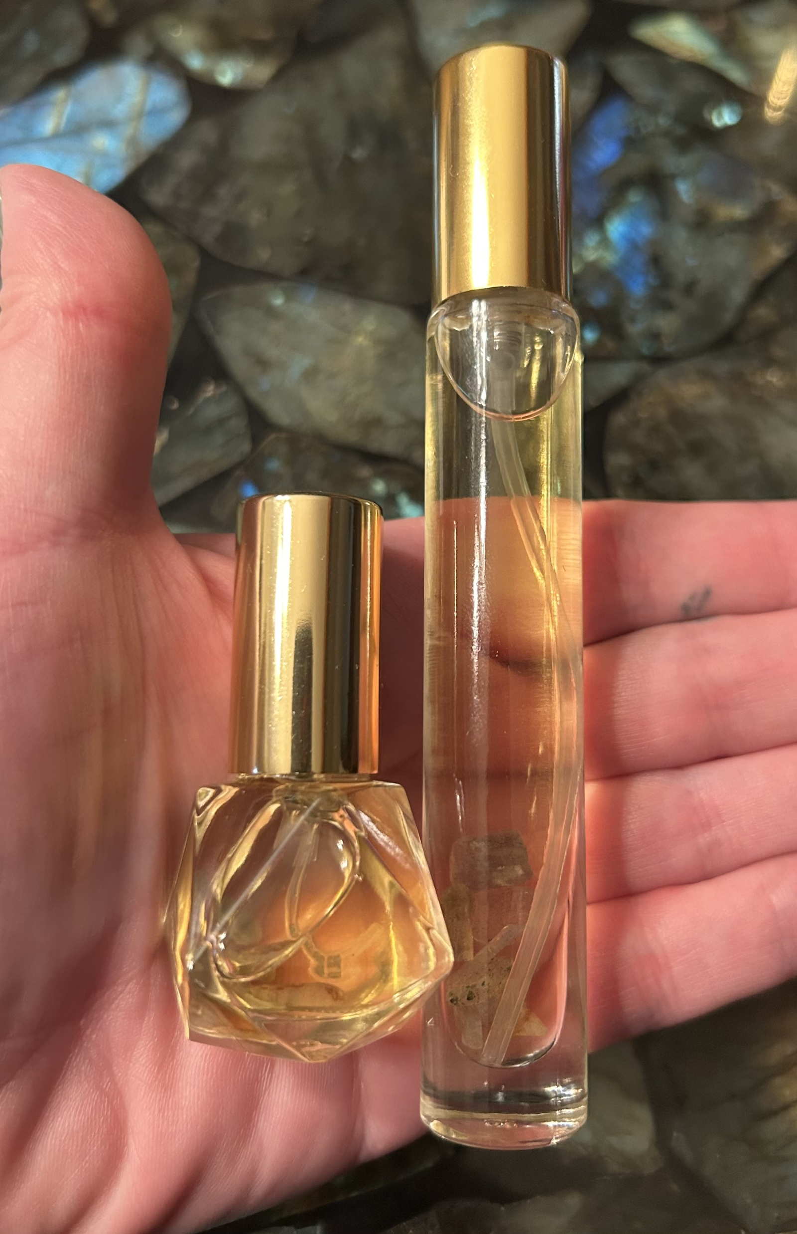 You will receive (1) 5ml Egyptian Journey perfume spray (perfumer's alcohol based) with labradorite chips included.